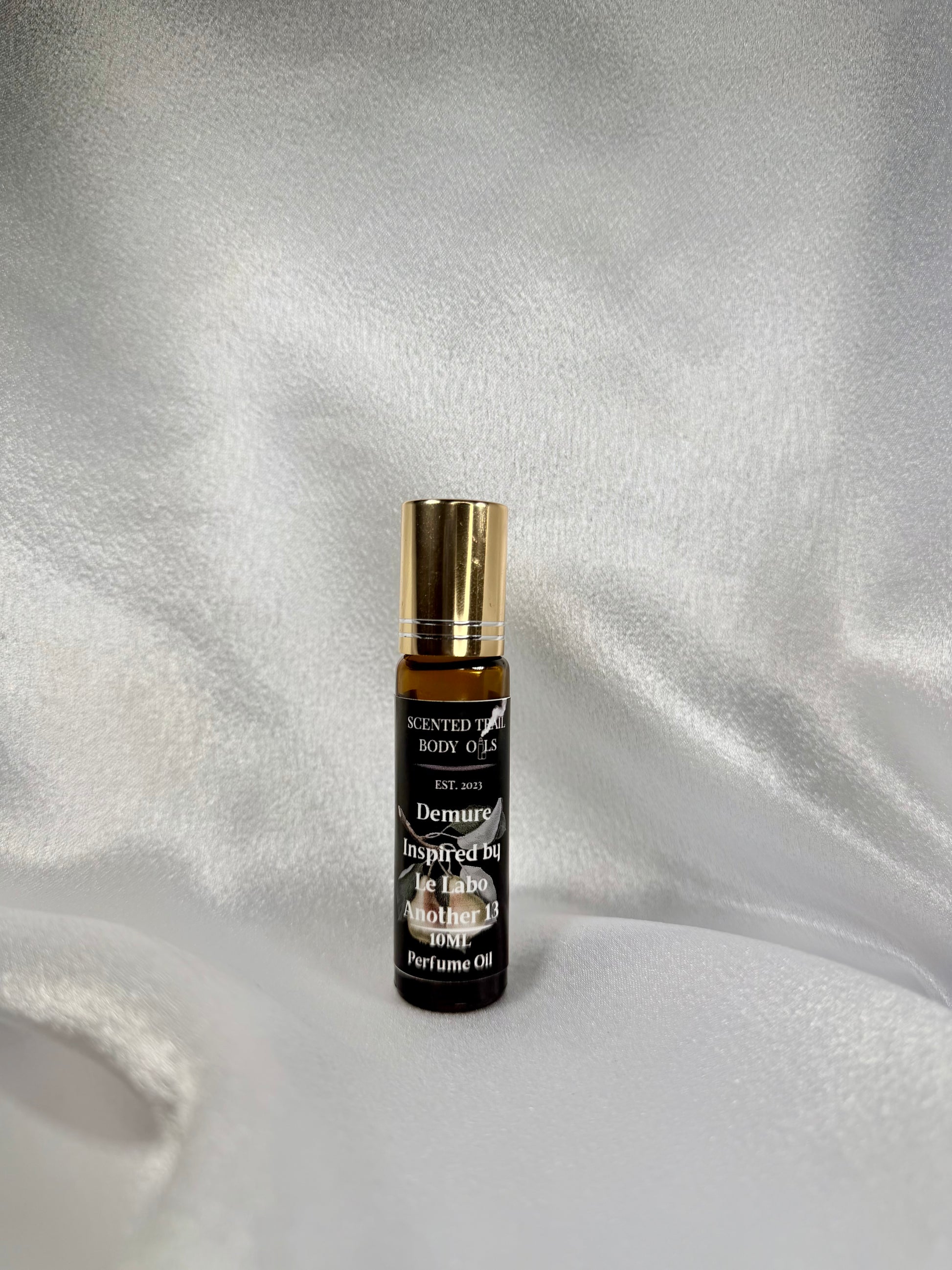 "Unleash your inner mystery with Demure, a fragrance inspired by Le Labo Another 13. With notes of musk, amber, and woody undertones, this scent envelops you in an alluring, animalic aura. Hints of fruity and floral add a soft touch, while a powdery finish leaves a lasting impression. Dare to be demure."